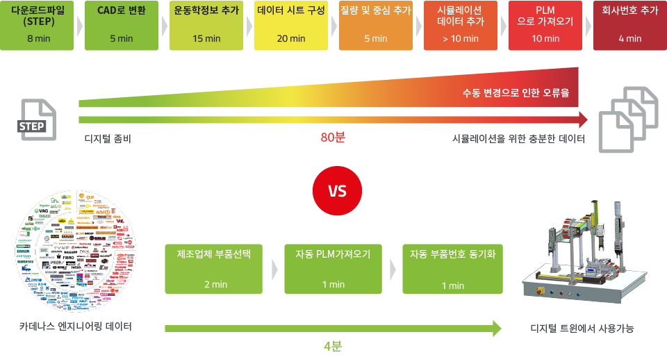 엔지니어와 제품 개발자는 주로 혁신적인 제품 개발에 집중하려고 합니다. 만일 부품업체가 매우 단순한 CAD모델만 제공한다면, 엔지니어는 필요한 모든 관련 정보를 조사하는 데 많은 시간을 할애하고 CAD 설계에서 수동으로 보완해야 합니다