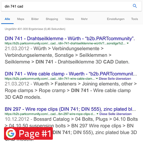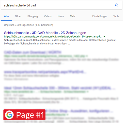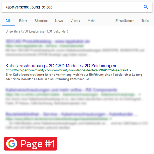그러면 경쟁자가 검색 엔진에서 앞서 나갑니다. 제품 가격이 저렴하거나 정교함에도 불구하고 불이익을 당할 수 있습니다. 검색 결과의 최상위 위치는 주머니에 현금을 넣는 것을 의미하지만, 전문 지식이 필요합니다. 3D STEP CAD 데이터를 사용하면 CAD 다운로드 포털의 검색 엔진 포지셔닝의 이점을 누릴 수 있습니다. 따라서 제품 및 전자 CAD 제품 카탈로그는 엔지니어 및 구매자가 찾을 수 있습니다.