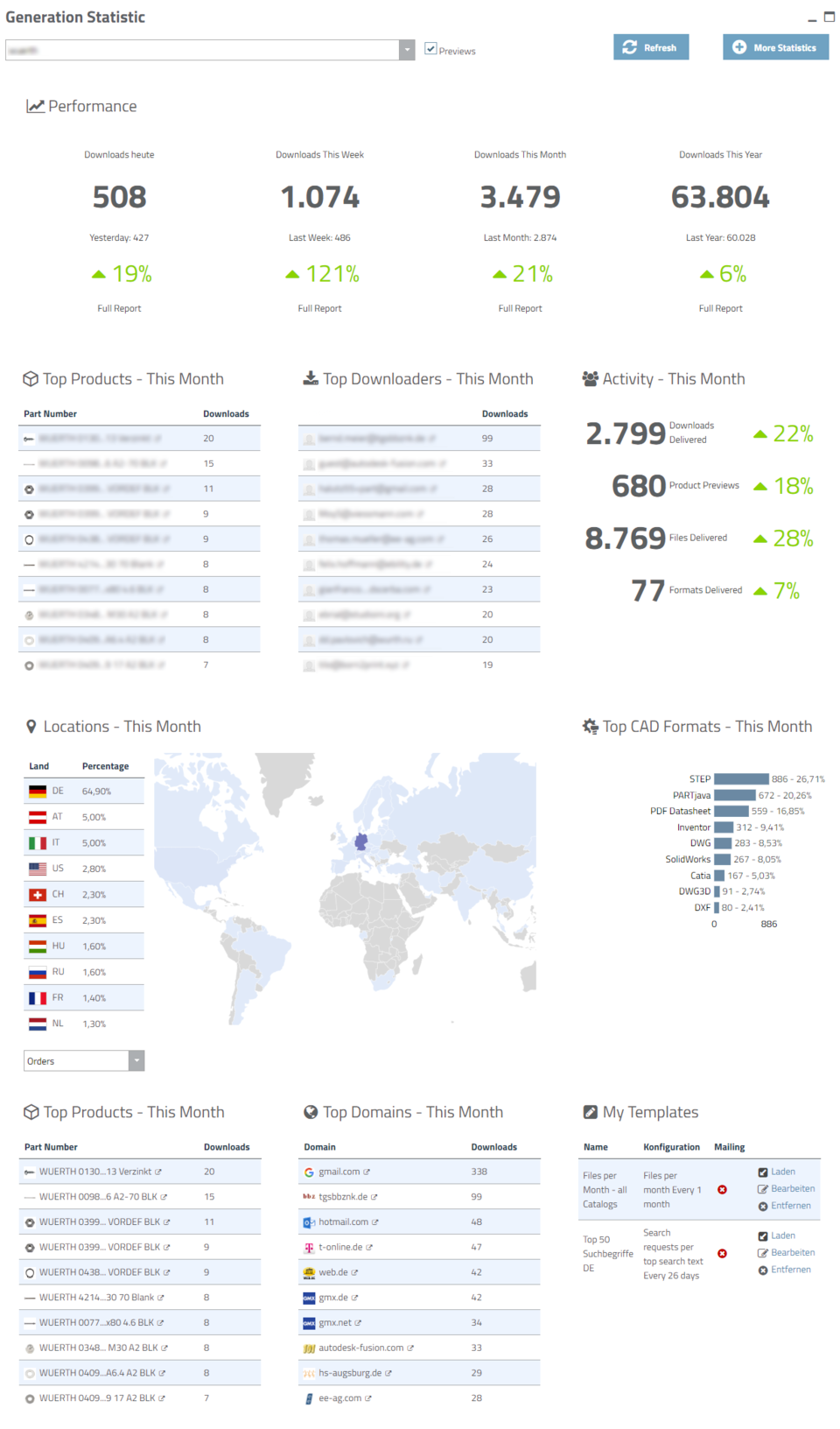 eCATALOGsolutions 통계 도구를 사용하면 3D STEP / CAD 다운로드 데이터를 빠르고 정확하게 분석 할 수 있습니다.